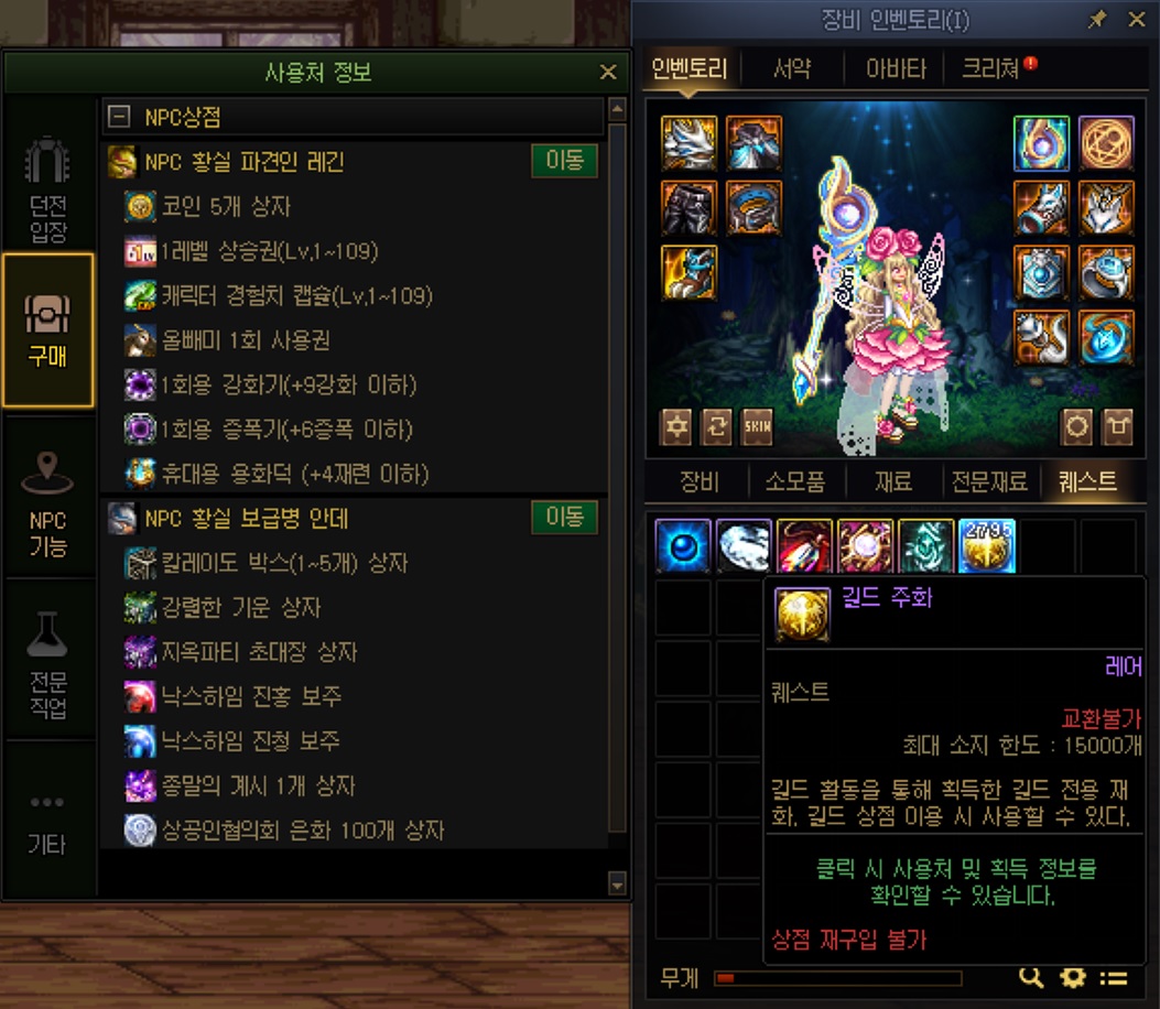 * 질문 5. 길드 주화는 어디에 써야함? 내 눈에는 코인이랑 칼레이do박스 말고는 안좋아보임..  (do박 필터링임?)