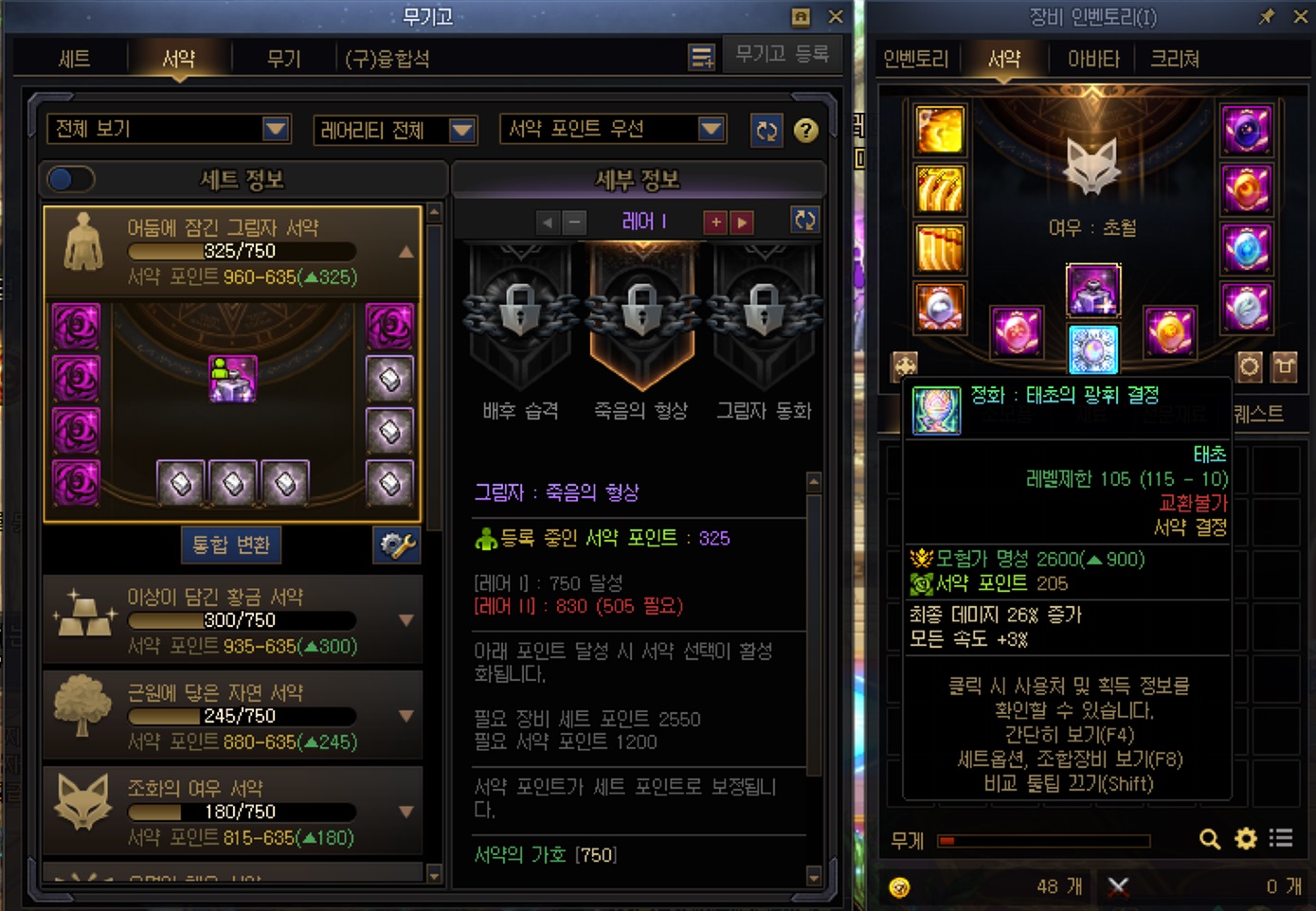 서약: 뭔가 에테리얼 세트랑 여우랑 관련있는거 같아서 여우로 맞춤..