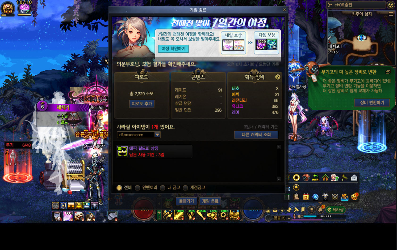 공지 [이벤트] 천해천 공략 이벤트 기간 연장 안내 던전앤파이터 2026.03.26 2,300 1 공지 던파로ON : 천해천 발표 요약 던전앤파이터 2026.03.07 20,112 15 공지 [상시이벤트] 3월 묻고답하기 이벤트 안내 (2월 답변왕 발표) 던전앤파이터 2026.03.12 4,614 0 공지 장비 / 플레이 / 뉴비 정보 모음 (224) 던전앤파이터 2025.04.24 999,999+ 121 공지 던전 공략 모음 (디레지에 레이드) (186) 던전앤파이터 2025.11.26 999,999+ 144 공지 전직 별 가이드 모음 (26/03/03 갱신) (768) 던전앤파이터 2026.02.27 999,999+ 402 질문 [공통] 다른분이 파견보낸 버퍼는 어디서 봐용?? 소울협회장 02:56 16 0 수다 [공통] 저장용 어도비플래시 02:21 106 0 수다 [공통] 여귀 히든압 마이 , 아처 히든압 천년의 뭐시기 두세트 팔아유 넨으로앗흥 02:20 244 0 수다 [공통] 성인 친목 길드! "월하무인" 에서 길드원 구해요! 많이 나간 자리를 찾읍니다 같이 천해천도 함께해요 (75) 넨으로앗흥 02:19 156,329 17 수다 [공통] 천해천 최후의조율자 3300판 / 환요 360캐릭 결과 (7) 뚱냥 02:12 2,289 15 수다 [공통] 울멍 길드에서 길드원분들 모십니다!! 길드공대 운영 중!! 롤 증바람 내전도 자주합니다!! (67) 솔랭거 02:11 138,505 10 질문 [공통] 버퍼 캡슐 남크루 (3) 보로라카스 01:57 106 0 수다 [공통] [망곰단]길드에서 쪼꼼 망그러진 길드원분들을 모십니당 미제 01:55 88 0 질문 [소환사] 복귀유저 질문 부스트업상자 (2) 기7l 01:47 107 0 수다 [공통] 구 에픽소울 상점바로가기하고 경매장등록버튼은 왜 사라졌을까... 베네츠카 01:45 97 0 수다 [공통] ■생로랑■길드원 모집!_[★천해천 정보공유&길공]_[디코활발/방송길공]_대형길드_뉴비,복귀대환영 (20) 콥듀란 01:39 73,400 4 질문 [공통] 깨어난 숲 극 선택이 안됨. (1) 일격에주님곁 01:37 131 0 질문 [공통] 별서고 액트 퀘스트 버그있는데? (1) 혈존 01:33 132 0 수다 [웨펀마스터] 나만운없어 ㅜㅜㅜㅜ (2) 땅크 01:01 237 0 팁 [다크템플러] 현금 10만원 공짜로 받아가세요~ 캐시까지! 임시dnf607773901 00:57 220 0 수다 [버서커] 현금 10만원 공짜로 받아가세요~ 캐시까지! 임시dnf607773901 00:56 146 0 수다 [공통] ★★★★[길드원 모집] 모찌랜드 길드에서 함께할 길드원을 구합니다.★★★★ (2) 카이렌스 00:43 1,294 0 질문 [공통] 서약/서약결정 어떻게 해야하나요? (2) MS:GUNDAM 00:42 251 0 질문 [버서커] 태초항아리 진짜 미친거 아님?? (6) 春봄 00:31 432 0 수다 [공통] 다들 굿나잇 (1) ????? 00:19 215 0