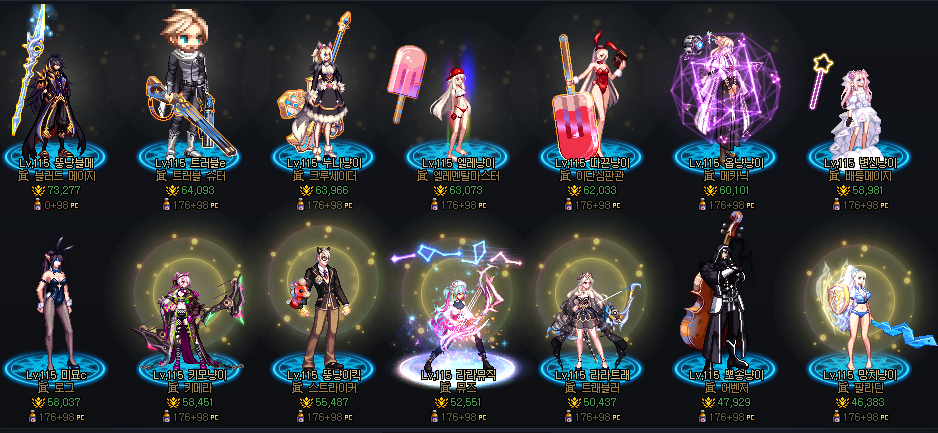 부계정의 번외급 부캐들이에요 6만대~4만대까지 나열해봤어요.