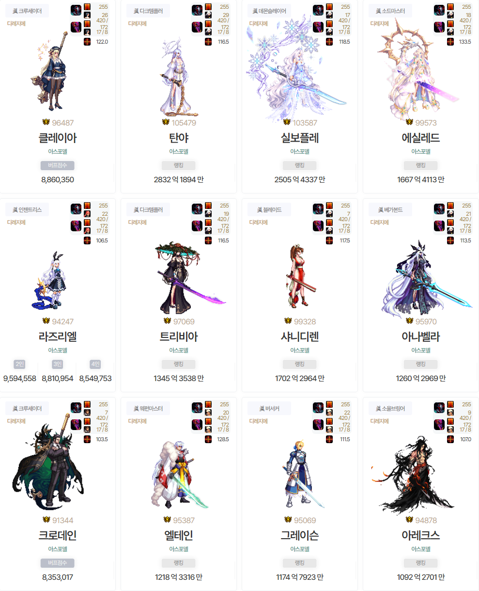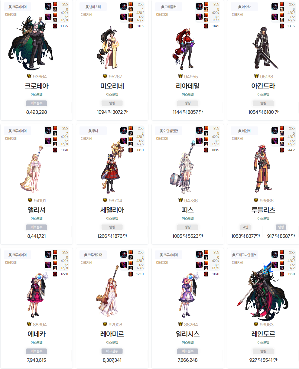 기존 악연가던캐릭터들은.. 유니크1~2진입 대부분 던담 1천억은 넘게되었군요오