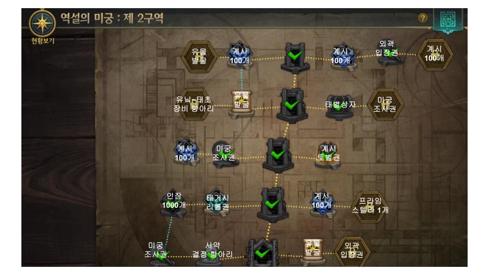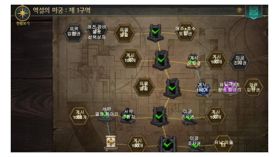 각 구역별 보상은 좌상단 현황보기 누르시면 이렇게 확인 가능합니다.