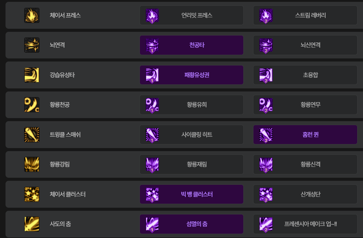 보다시피 저는 사춤이랑 체클을 커맨드로 사용해서 스킬창에 여유가 있어용