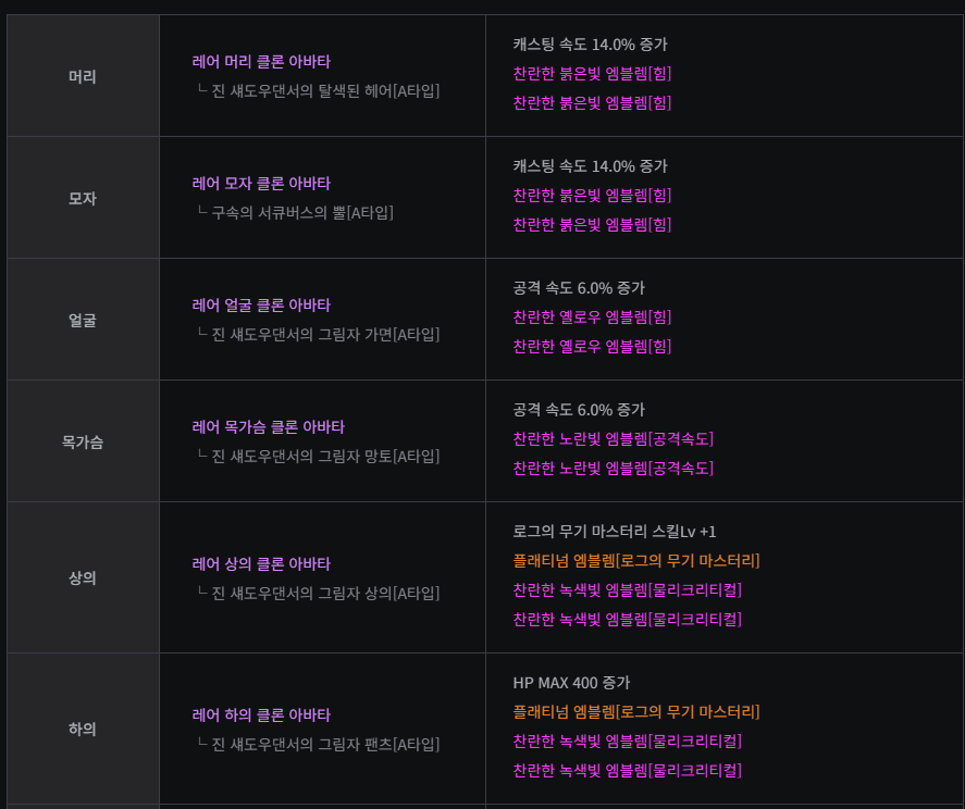 보기 전직 1차 각성 2차 각성 전체 전직 전체 전직 귀검사(남) 웨펀마스터 소울브링어 버서커 아수라 검귀 귀검사(여) 소드마스터 다크템플러 데몬슬레이어 베가본드 블레이드 격투가(남) 남넨마스터 남스트라이커 남스트리트파이터 남그래플러 격투가(여) 여넨마스터 여스트라이커 여스트리트파이터 여그래플러 거너(남) 남레인저 남런처 남메카닉 남스핏파이어 어썰트 거너(여) 여레인저 여런처 여메카닉 여스핏파이어 패러메딕 마법사(남) 엘레멘탈 바머 빙결사 블러드 메이지 스위프트 마스터 디멘션워커 마법사(여) 엘레멘탈 마스터 소환사 배틀메이지 마도학자 인챈트리스 프리스트(남) 남크루세이더 인파이터 퇴마사 어벤저 프리스트(여) 여크루세이더 이단심판관 무녀 미스트리스 도적 로그 사령술사 쿠노이치 섀도우댄서 나이트 엘븐나이트 카오스 팔라딘 드래곤나이트 마창사 뱅가드 듀얼리스트 드래고니안 랜서 다크 랜서 총검사 히트맨 요원 트러블 슈터 스페셜리스트 아처 뮤즈 트래블러 헌터 비질란테 키메라 다크나이트 다크나이트 크리에이터 크리에이터 공통 공통