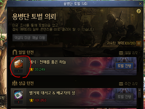 계시던전 토벌권이 돌아두면 매일 지급하는 토벌권량이 올라간다는 사실을 깨닫!!!