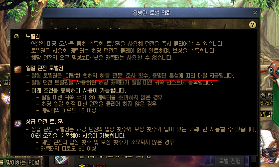 그리고 상던 토벌권은 용병단 11렙때 주간 12캐릭까지 !!