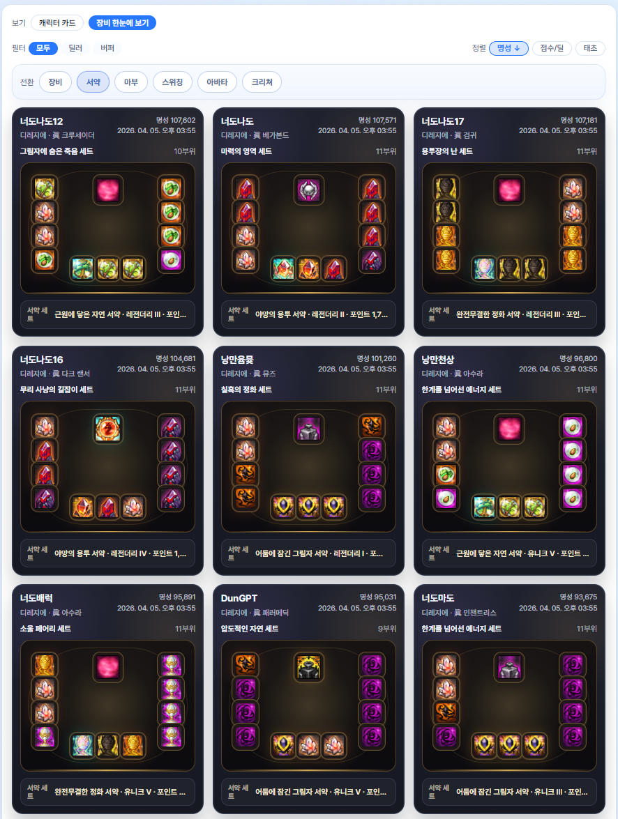 [공통] 모험단 장비 한번에 보기 -던유(DunGPT)