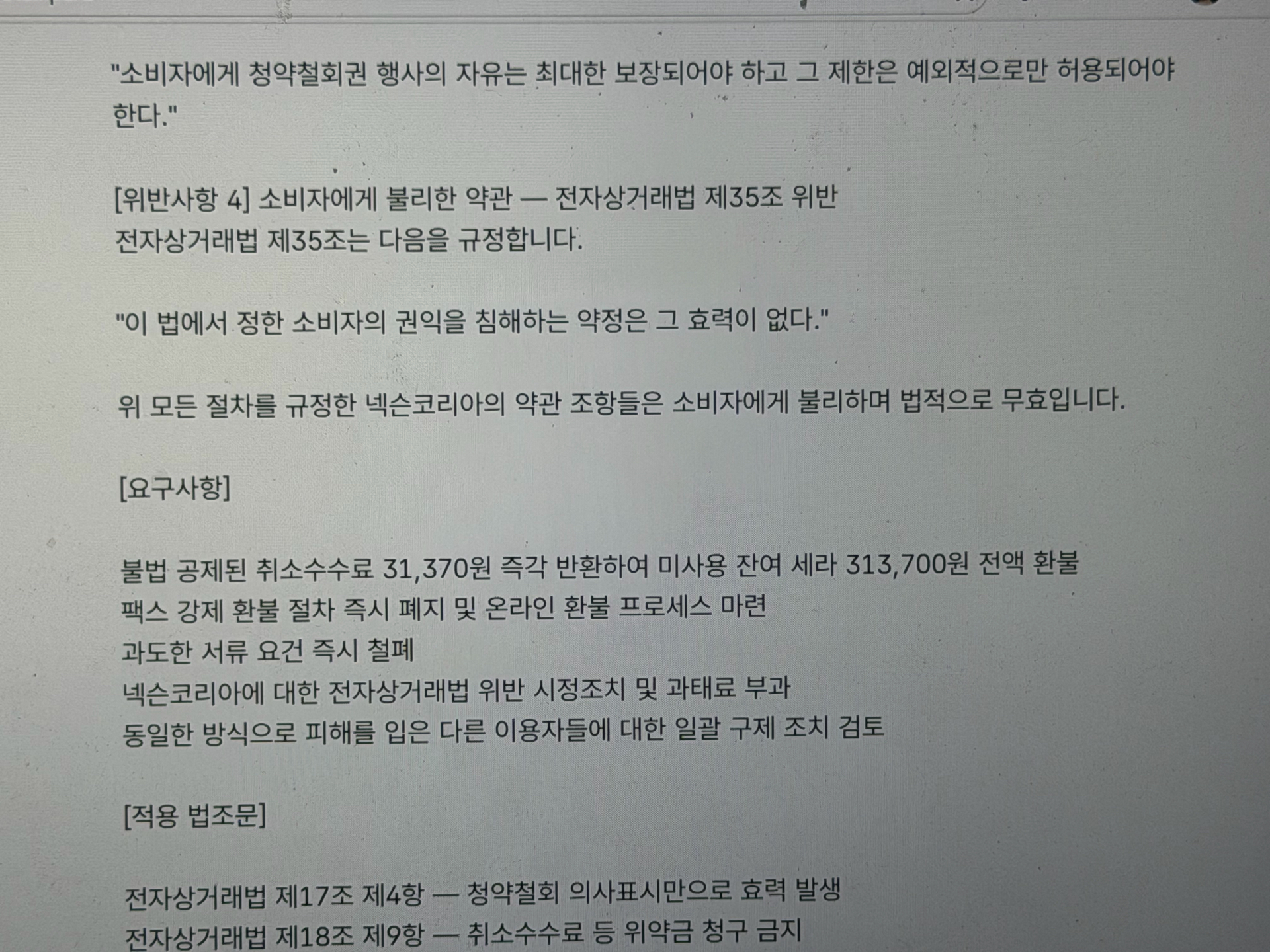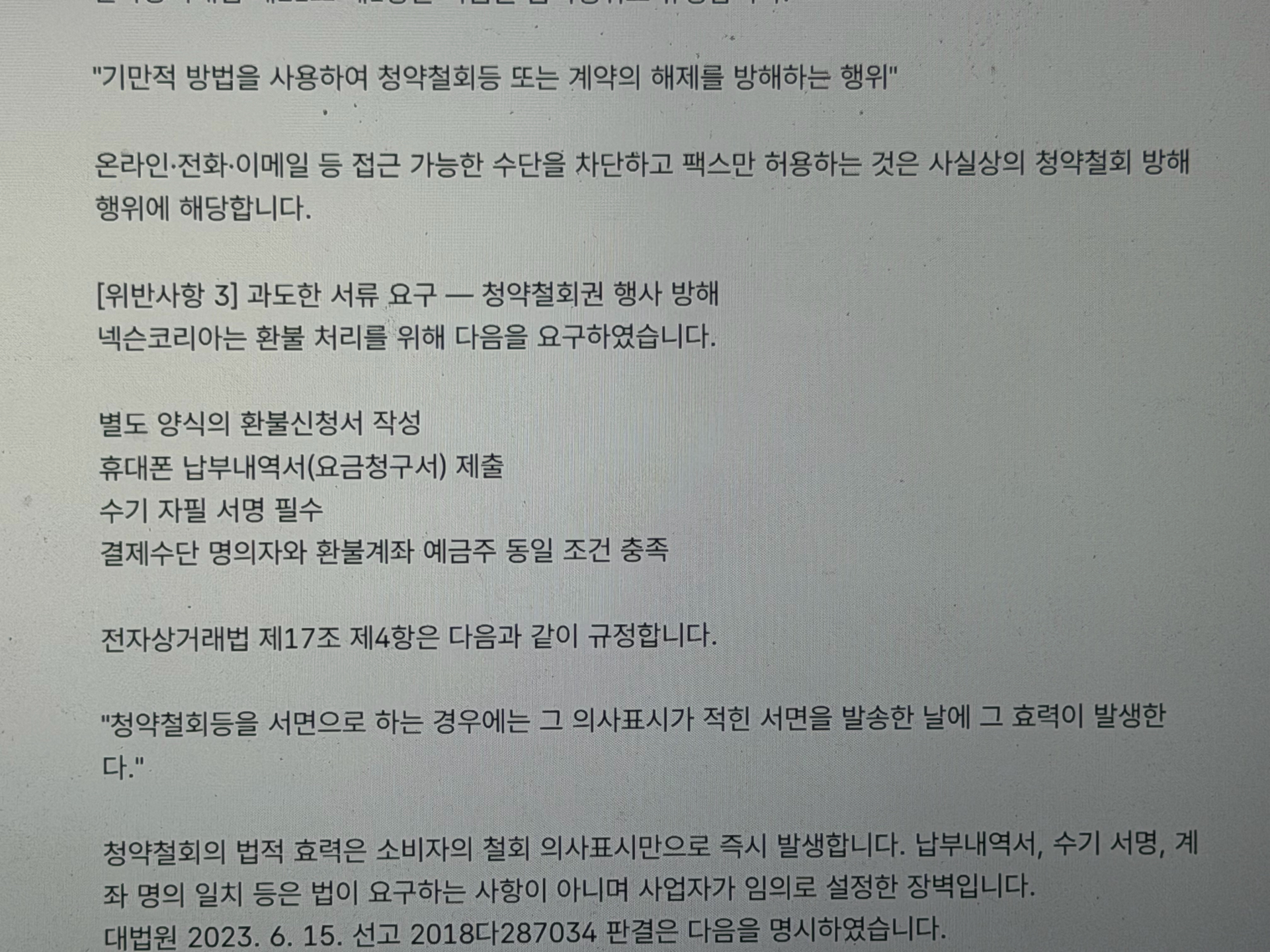 취소 수수료도 부당하고 팩스 같은 구식 기술과 개인정보 요구에 제가 속상하고 슬펐어요.