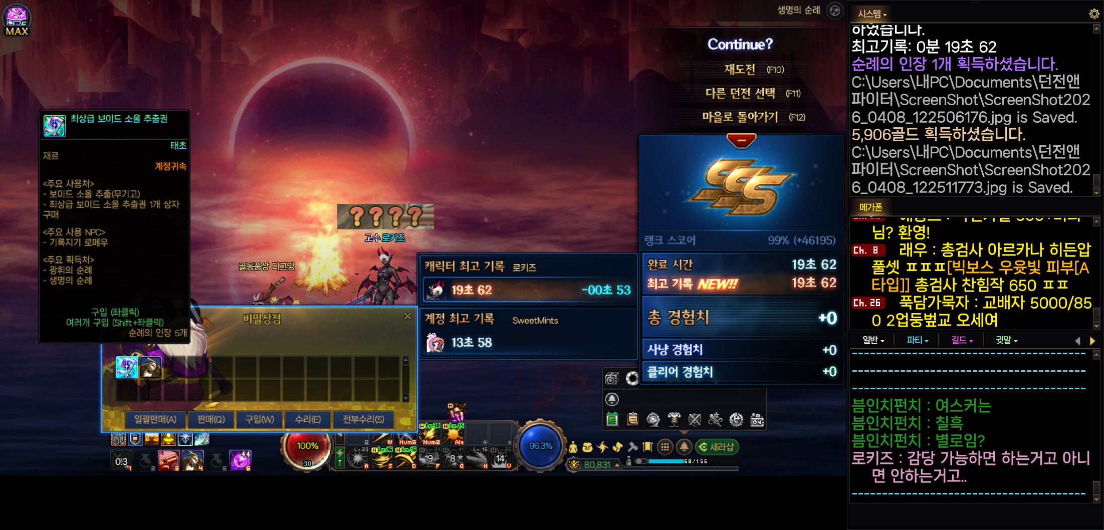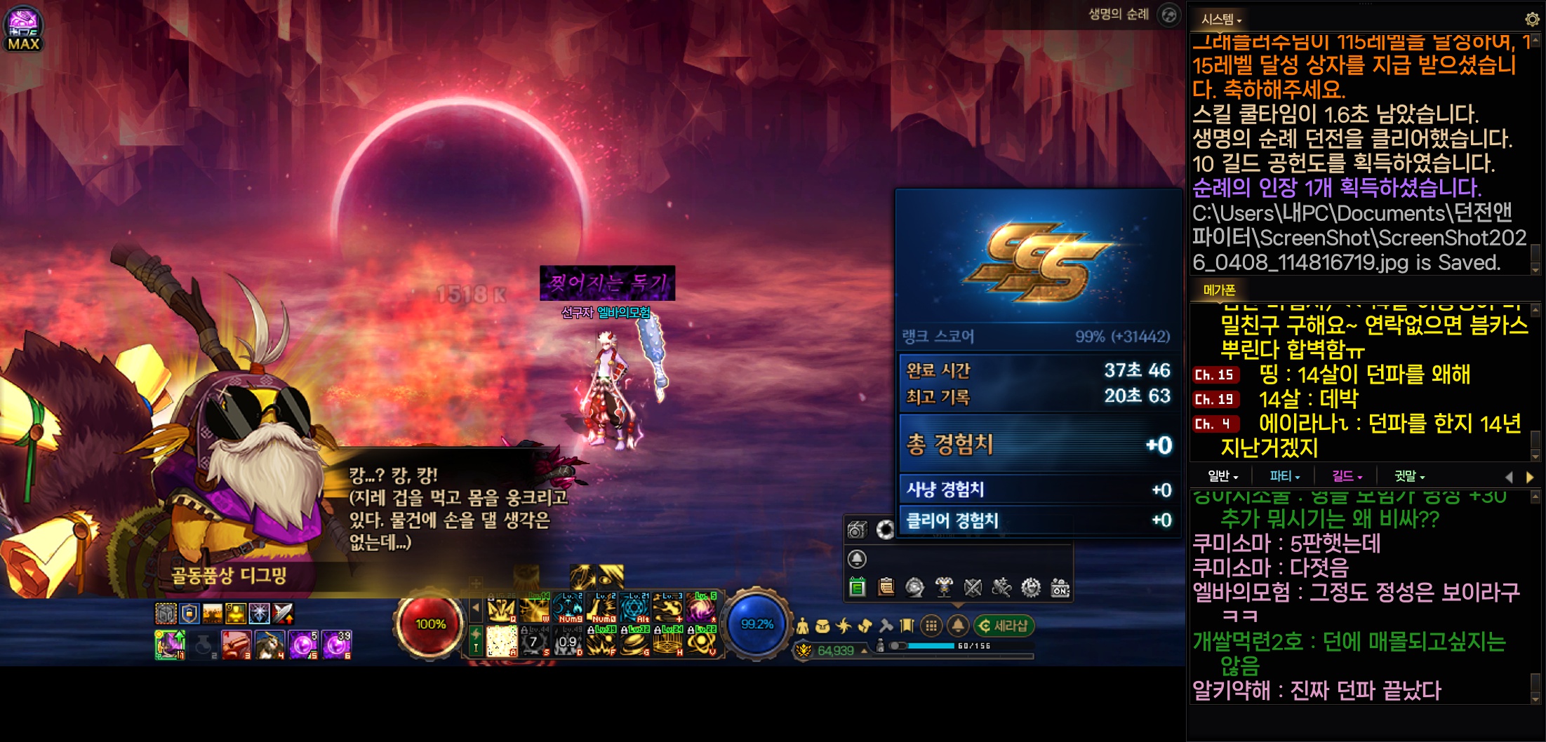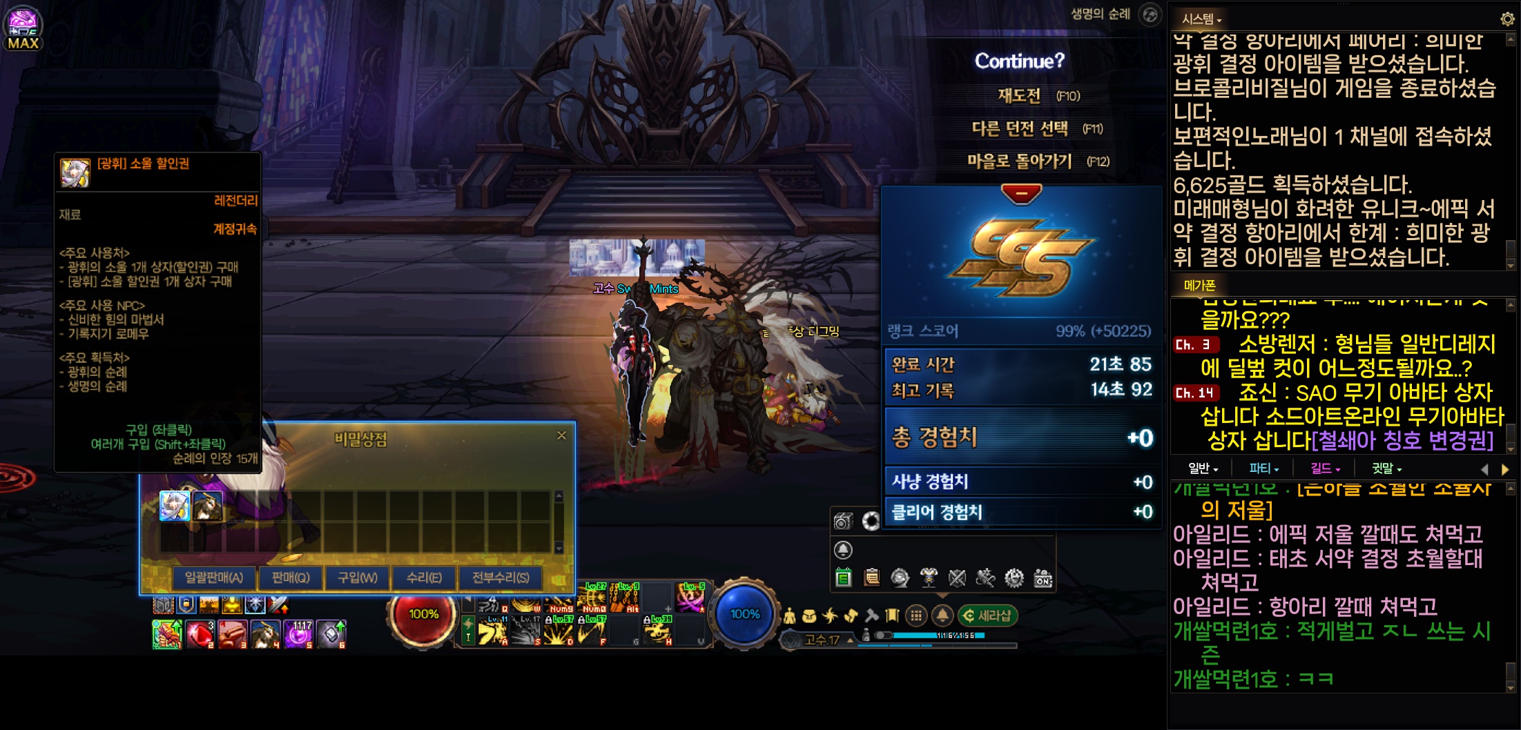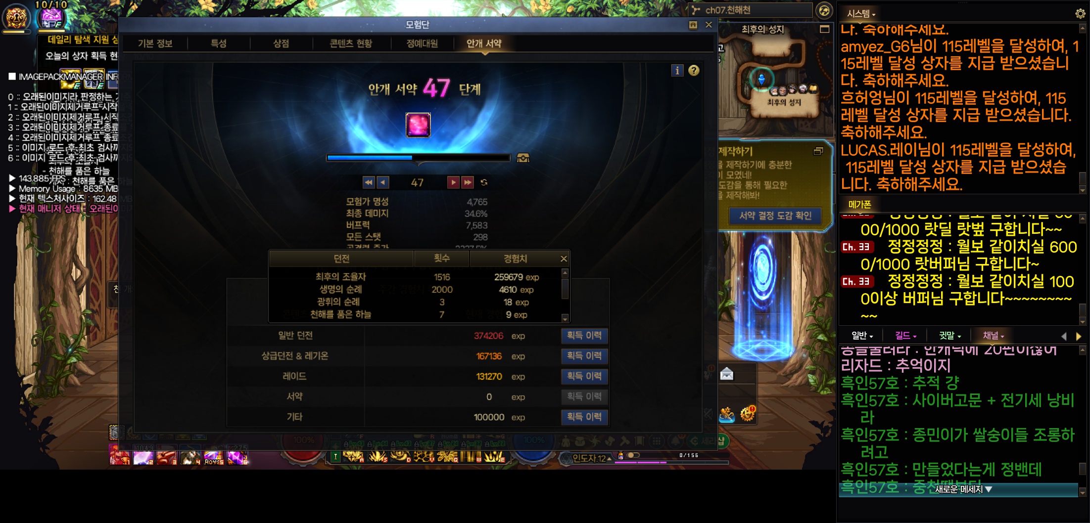 내가 보기엔 일반던전 경험치가 붉은 색이고 캐릭터와 시간 여유가 많을때 가는 던전이라고 밖에 생각이 안들었던 던전이었습니다..