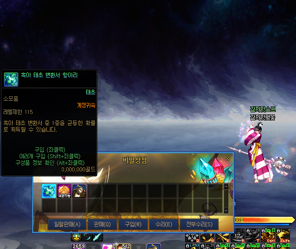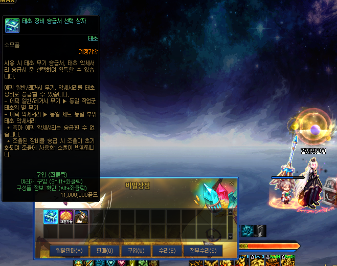 처음으로 본 태초승급서를 샀어요!! -1100만 골드 ㅠ