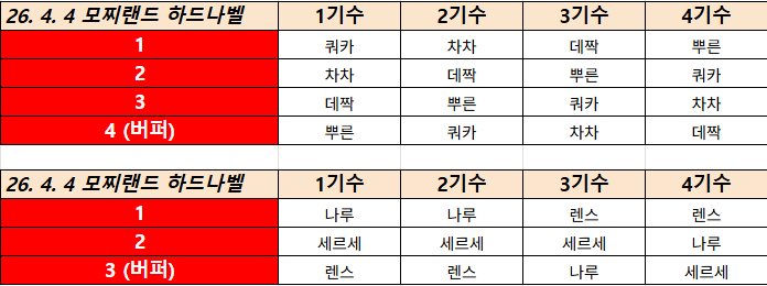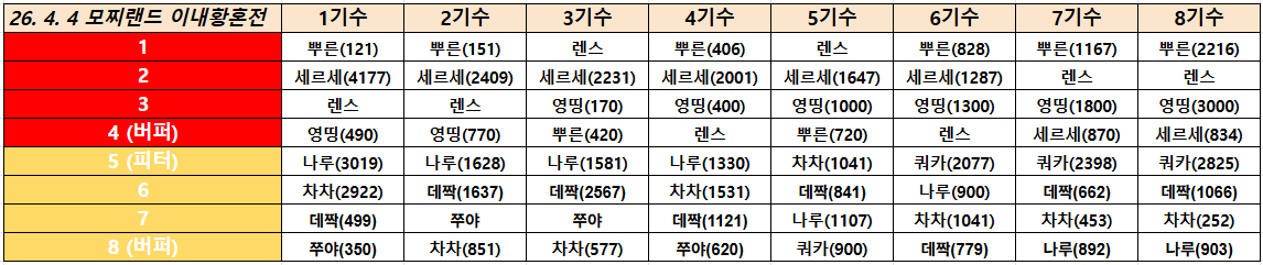 □ 길드 레이드 운영 기수표 샘플