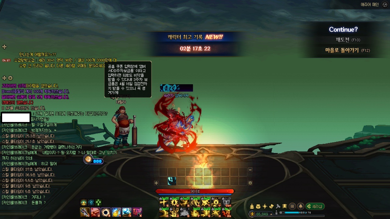 공지 [상시이벤트] 4월 묻고답하기 이벤트 안내 (3월 답변왕 발표) 던전앤파이터 2026.04.09 1,456 2 공지 [이벤트] 천해천 공략 이벤트 기간 연장 안내 던전앤파이터 2026.03.26 8,233 4 공지 던파로ON : 천해천 발표 요약 던전앤파이터 2026.03.07 23,746 15 공지 장비 / 플레이 / 뉴비 정보 모음 (224) 던전앤파이터 2025.04.24 999,999+ 122 공지 던전 공략 모음 (천해천 상급 던전) (191) 던전앤파이터 2025.11.26 999,999+ 145 공지 전직 별 가이드 모음 (26/03/03 갱신) (769) 던전앤파이터 2026.02.27 999,999+ 402 질문 [공통] 재료 중 시간 표시 있는 것들은 주간 삭제 품목인가요? 더인파이터 16:32 28 0 수다 [공통] 천해천 불편한 점들 정리 (1) Alaco 16:20 92 0 수다 [공통] 제압하라는데 제압스킬 각성에 나왔는데 해결방법좀요 (2) 핑크메딕 16:09 138 0 수다 [공통] 생각보다 불편한거 Alaco 16:06 97 0 질문 [공통] 역병의씨앗으론 뭐하면좋죠?ㅠㅠ (2) 띵겨리 16:04 120 0 수다 [공통] 네오플 : 리 귀검술은 평타 아니야 . sghs 15:56 166 0 수다 [공통] 나는 그냥 종민씨 종신디렉터 했으면 (1) 질긴우유통 15:51 165 0 수다 [공통] ★★★★★ 모찌랜드 신입 길드원 모집 중 ★★★★★★★ (1) 카이렌스 15:50 592 4 수다 [공통] [모집] ▶띵동◀ 길드에서 함께하실 가족을 모집 합니다 ! 베이비복스 15:48 13,190 10 질문 [아수라] 제련케릭터 제련 재료 수급 어디서 해야되나요? (3) 디자인어01 15:17 161 0 질문 [패러메딕] 고수님덜 이 무기는 왜 태초 레거시 무기 변환서 못쓰는 건가요..? (2) 우엉라딘 15:08 216 0 수다 [공통] 속보)야 나 새로키워 빌런 등판 ㅋㅋㅋㅋ lD:초코퐁듀 15:08 246 0 수다 [공통] [설렘주의보] 길드원 모집중입니다~ (21) 흔들여신 14:50 17,275 10 질문 [공통] 악연2페 쿨감? (1) 엄살왕김고니 14:45 192 0 질문 [공통] 헤딩 패턴 알라고 가는데 아님? (4) 이승민 14:31 328 0 수다 [공통] 매칭솔플러는 레이드 타임이 가장 플탐이 짧다 캔슬하슈 14:30 184 0 수다 [공통] [길드원 모집] 하와왕&븜니찌와 천해천 태초 서약 비틱할 복귀/고인물/랭커/뉴비 구합니다. 톡방ㅇ 디코ㅇ 활동多 (3) kuroha 14:19 4,391 0 토론 [공통] 너 님의 말대로 올려줄게요. (2) 기여운년 13:59 385 0 수다 [공통] [모집] 븜다닥 & 븜다다닥 길드원 모집중 <개꿀잼 오픈톡 맛보기 공개> (669) 싑고수 13:57 312,034 32 수다 [공통] 감자네 던파 주간&일일 플레이 기록[솔플 살아남기] (11) 감자맛스프 13:53 788 9