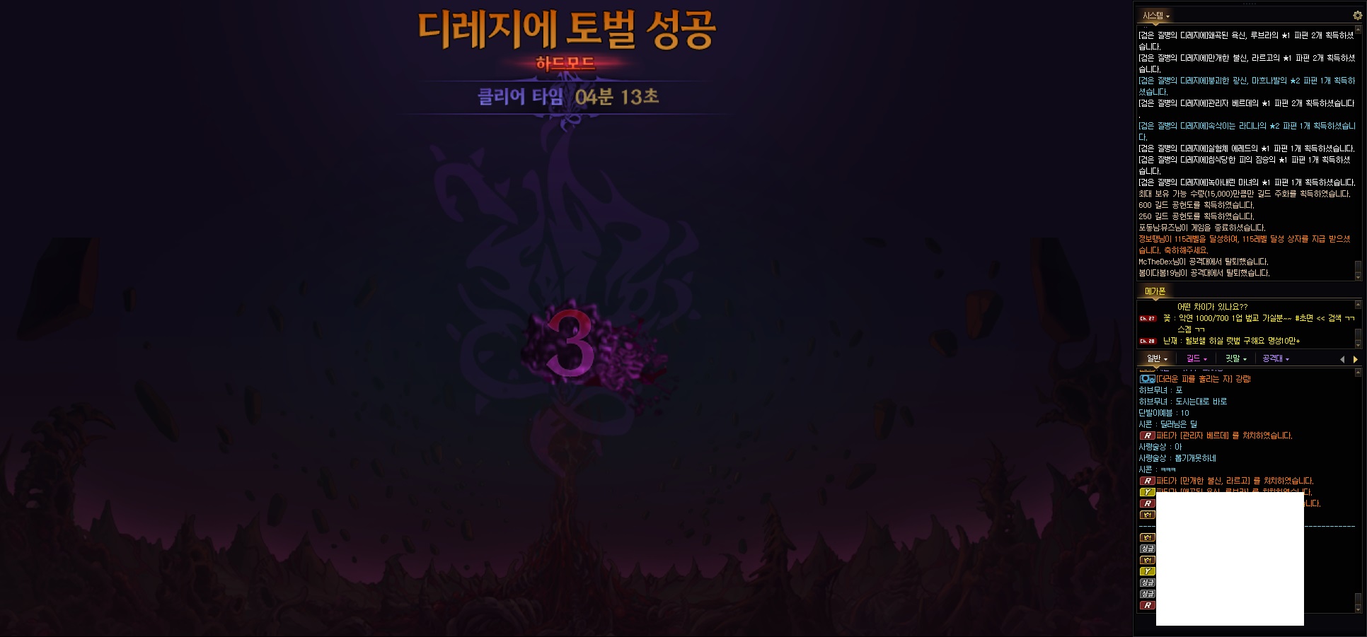 그 : 비명(1각) > 3문(업둥 올탭) > 1~2문(남은포 털고 후퇴) > 딜러 레드 합류