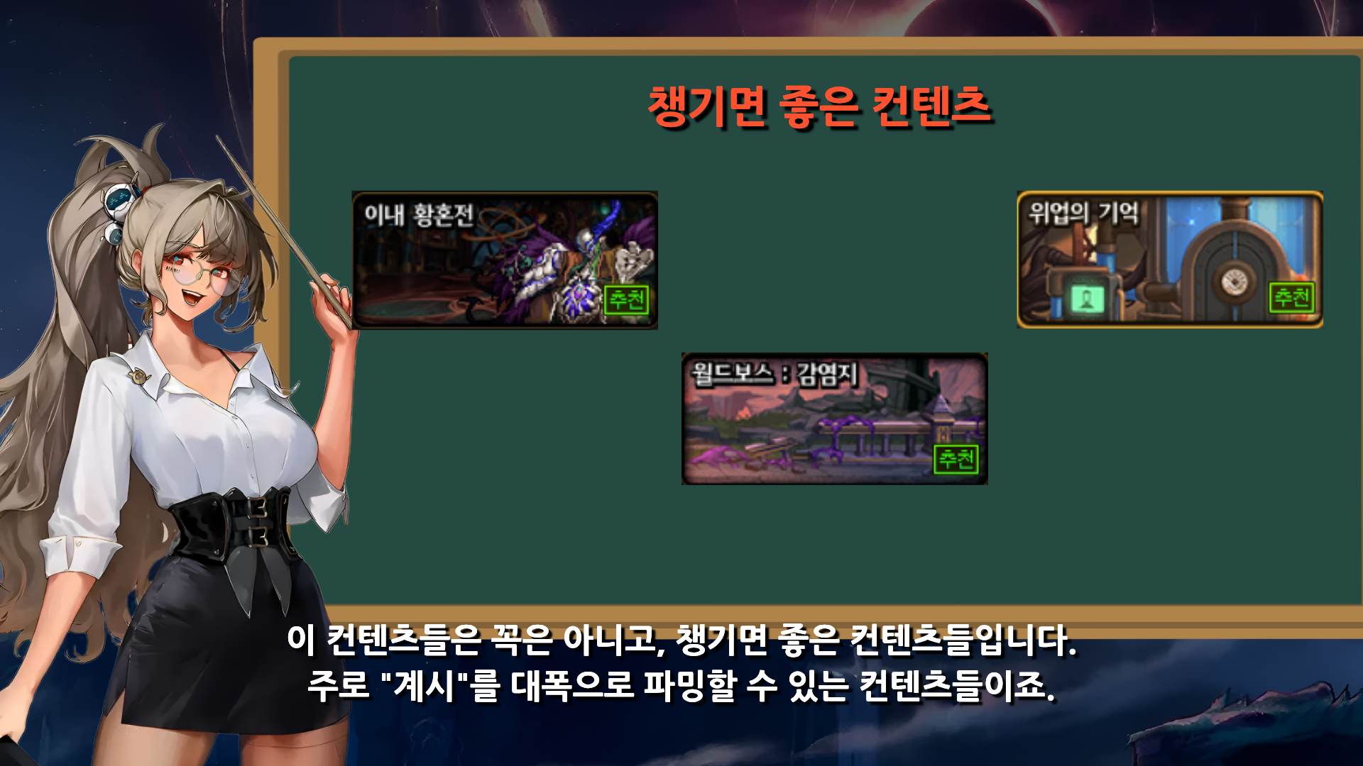 공지 [상시이벤트] 4월 묻고답하기 이벤트 안내 (3월 답변왕 발표) 던전앤파이터 2026.04.09 1,946 2 공지 [이벤트] 천해천 공략 이벤트 기간 연장 안내 던전앤파이터 2026.03.26 8,564 4 공지 던파로ON : 천해천 발표 요약 던전앤파이터 2026.03.07 24,114 15 공지 장비 / 플레이 / 뉴비 정보 모음 (224) 던전앤파이터 2025.04.24 999,999+ 123 공지 던전 공략 모음 (천해천 상급 던전) (191) 던전앤파이터 2025.11.26 999,999+ 145 공지 전직 별 가이드 모음 (26/03/03 갱신) (770) 던전앤파이터 2026.02.27 999,999+ 403 팁 [공통] [천해천 시스템] 이해가 쏙쏙 되는 서약 시스템 알아보기 (21) 염제를핥자 05:00 4,246 14 팁 [공통] [천해천 던전] 간단하게 보는 천해천 던전 모음집.zip (24) 염제를핥자 04:57 3,062 30 팁 [공통] [천해천 가이드] 천해천 시즌은 뭐 하면 됨? 염제를핥자 04:53 146 0 수다 [공통] 신규친목길드 티백에서 길드원 모집합니다 ★☆단톡/디코/뉴비복귀환영☆★ (1) 악령쿠마 03:56 6,463 4 수다 [공통] 광휘의 순례 1000판 노가다 결과 (3) 뚱냥 03:09 316 8 수다 [공통] 저만 태초서약 없나여 DKT헤이 03:05 208 0 수다 [공통] 고작 100만 아까워서 영약 먹고 튄놈.ㅋㅋ 반사회단 02:42 265 3 토론 [공통] 프라임스텔라가 아니고 태초소울을내놔라 그리고 수급처도. 다른재화 통틀어 전부다 싹 개편좀 (2) 빙의인간 00:27 267 1 질문 [공통] 지금처럼 딜찍메타면 깡딜장비가 좋은거죠?? (5) 127억 00:27 351 0 질문 [공통] 보이드소울 어디다쓰나요? (1) 버섯..커? 00:23 287 0 수다 [공통] [설렘주의보] 길드원 모집중입니다~ (23) 흔들여신 00:06 17,542 10 질문 [공통] 지금 115캐릭터들은 만들고 있는데 (1) 제왕베메 2026.04.12 250 0 질문 [공통] 흑아랑 유일장비 질문 (4) 社格實時 2026.04.12 264 0 팁 [공통] [설명부실주의] 쳐내쳐 이후 생성한 캐릭에게 오라클 장비이벤으로 고유장비유틸을 챙겨보자 캔슬하슈 2026.04.12 269 1 수다 [공통] ★[길드원 모집] 길드 '별빛정원' 에서 모험가 긴급소집!★ ★뉴비/복귀/현역 모두 대환영/선생님 대기중★ (5) 아가방만지기 2026.04.12 2,811 9 수다 [공통] 박종민의 말말말 추가해라 (3) 사탕별여그플 2026.04.12 370 4 수다 [공통] 어둠의 시챌 게임!! (1) 임시dnf909167831 2026.04.12 212 0 질문 [공통] 보통 명성 하고 아이템 어디까지 맞춰 주시나요?? (5) 제왕베메 2026.04.12 315 0 팁 [공통] 다들 흑아 현질해서 맞춤? (8) 이승민 2026.04.12 542 0 질문 [공통] 아르카나 패키지 끝나면 란마 콜라보 하나요? (8) [Dark]Night 2026.04.12 348 1