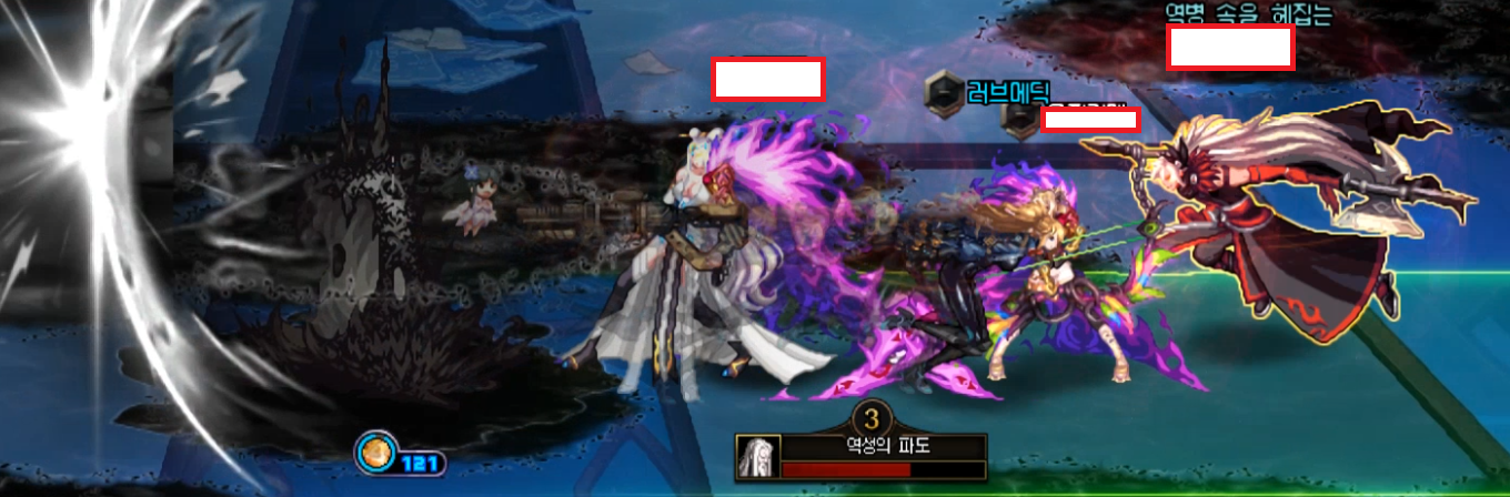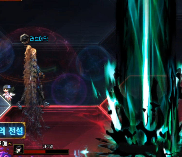 종말의 파도 패턴 때는 빨간색 일직선이 생긴 유저가 괴물처럼 생긴애한테 맞춰주시면