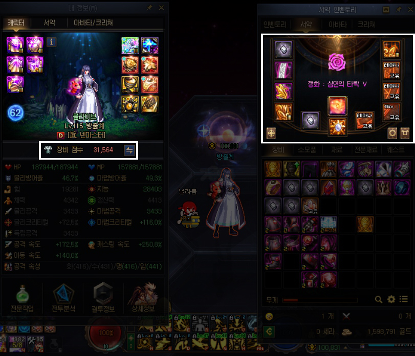 세팅은 11증 + 장비점수 3.1 + 칠흑 + 유니크5