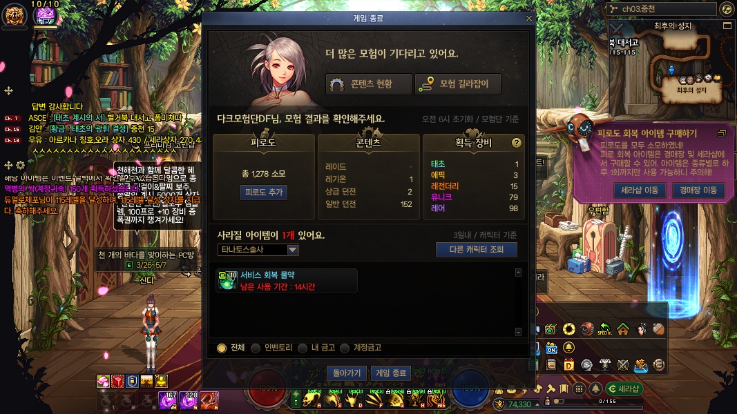 공지 [수상자 발표] 천해천 가이드/시스템/던전 공략 이벤트 수상자 안내 던전앤파이터 10:41 726 1 공지 [이벤트] [아포칼립스] 콘텐츠 공략 이벤트 안내 (4/15 ~ 5/7) 던전앤파이터 15:00 1,557 0 공지 [상시이벤트] 4월 묻고답하기 이벤트 안내 (3월 답변왕 발표) 던전앤파이터 2026.04.09 3,133 2 공지 던파로ON : 천해천 발표 요약 던전앤파이터 2026.03.07 25,243 15 공지 천해천 뉴비 정보 모음 (가이드 / 시스템 / 장비) (225) 던전앤파이터 10:50 999,999+ 124 공지 천해천 던전 공략 모음 (천해천 - 퍼스트서버 아포칼립스) (191) 던전앤파이터 15:30 999,999+ 145 공지 전직 별 가이드 모음 (26/03/03 갱신) (770) 던전앤파이터 2026.02.27 999,999+ 403 수다 [여크루세이더] 서약중복 광기맛쿠키 20:56 24 0 수다 [공통] [븜다닥 모집] 또 다시 사람을 패버렸네요 ㅎㅎ; 이거 참 원 ㅋ <개꿀잼 오픈톡 맛보기 공개> (669) 싑고수 20:40 313,691 32 수다 [공통] 박제 닉네임 : 보만 (카인) 모험단 : 심란 임시dnf417433323 20:38 72 0 수다 [공통] [멜로디] 연합길드 길드원 모집! 단톡 디코 O / 천해천 부술사람 급구!!! (17) 힉이 20:05 11,747 4 수다 [공통] 박종민의 말말말 추가해라 (추가 및 수정) (14) 사탕별여그플 20:05 2,045 14 수다 [공통] 이건 뭐지.... (1) 헤카테 19:54 183 0 수다 [공통] 패스에있는 아바타 선택 능력치 변경권 써주실분 구해요 ~ 안쥬 19:51 106 0 수다 [공통] 오늘도 하나 먹고 시작 로봇폭탄왕 19:02 256 0 수다 [공통] 헬카리움 광검/대검 형상팔아요 (2) 굳은행사 18:48 160 0 수다 [공통] [설렘주의보] 길드원 모집중입니다~ (23) 흔들여신 18:00 18,308 10 수다 [공통] ♡아깽이♡ 길드 집사들 구합니다 내향인들의 최고 쉼터입니다 =^._.^= (53) churr 17:56 39,218 13 수다 [공통] 레기온보상으로보는 미카엘라컷 be키니시티 17:40 331 0 수다 [공통] 신규 레기온 별로네 (2) 새콤달콤지뢰 17:31 486 0 수다 [공통] 므여 깡계글 있었는데 사라졌네 (7) 캔슬하슈 16:54 313 0 수다 [공통] ★★ [오픈톡방] 븜하 커뮤니티 멤버 모집 [수다 / 정보 / 벞교 / 천해천 시즌!!/ 도파민파티 / 던슬렁 환영] ★★ (10) 타쿠쟝 16:47 52,584 4 수다 [공통] ♥ 2030길드 [배고파] 에서 신입 세달만에 대 모 집 중♥ 천해천 같이 즐겨용! (51) 빛 16:28 45,495 10 수다 [공통] [븜미사관학교] 장기적으로 함께할 길드원 구합니다! 븝미문어 16:10 2,167 0 수다 [데몬슬레이어] 13강실패 펑 끝내주는데몬 16:06 341 0 수다 [공통] 7캐릭인데 생각보다 계시가 다 안 떨어지네요 (7) 도황신 16:01 477 0 수다 [공통] 광휘의 순례 1000판 노가다 결과 (23) 뚱냥 14:56 4,076 66