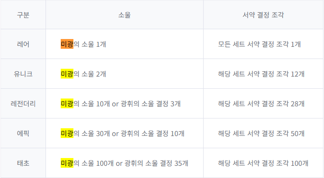 결정확천은 갯수들 다들 아실거라 여기고 패스하겠습니다. 결론적으로 이러한 이유로 광휘를 계시로 바꾸는건 마음을 접으시길.