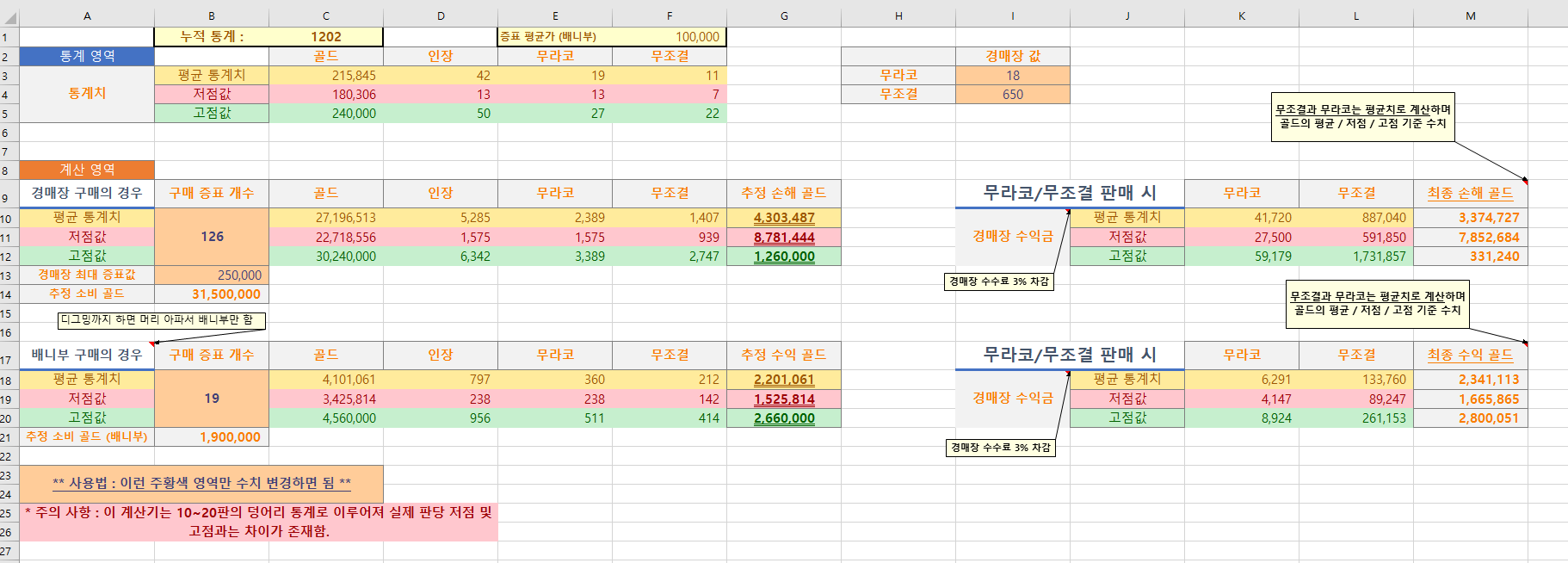 계산용 시트에서 주황색 영역만 수치 조정하시면 됩니다.