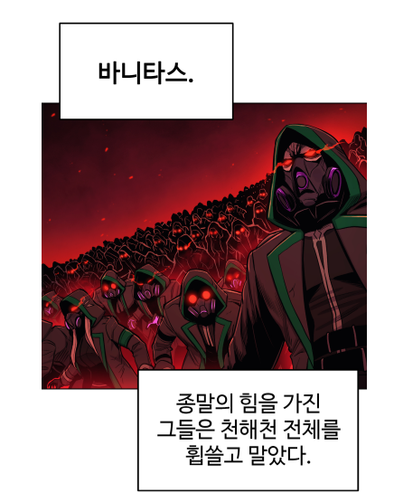 애초에 민간인들한테 저런 구호 내걸면 바로 자체적으로 와해될 수준이고 단순히 반국가체제를 넘어서 거의 침략전쟁에서나 할법한 수준인데 군대도 아닌 민간인에 가까운 사람 위주로 구성된 단체에 세계파괴라는 명분이 의문을 갖는 사람이 없는게 이상할 지경임. 게다가 공식 웹툰에서는 바구스가 바니타스 단원들이 '자신의 의지로 희생을 감수한다'고 분명히 말함. 결국 훈련되지 않은 인간들이 자의지로 저렇게 한다는 뜻인데.. 차별 받은건 화나겠지만 그렇다고 단체 단위로 저렇게까지 하나 싶음.