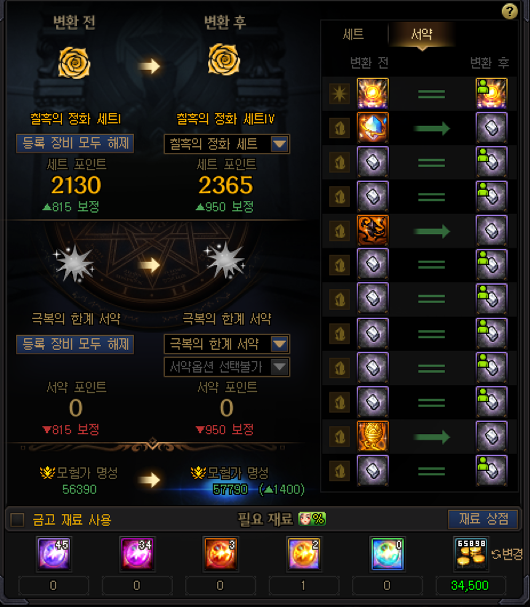 한계 서약을 먹어서 장착하고 레전 및 에픽 결정들이 다른 세트가 나왔음에도 불구하고 착용하면 명성 및 딜에서 손해보다 이득이 커서 착용중이었는데요