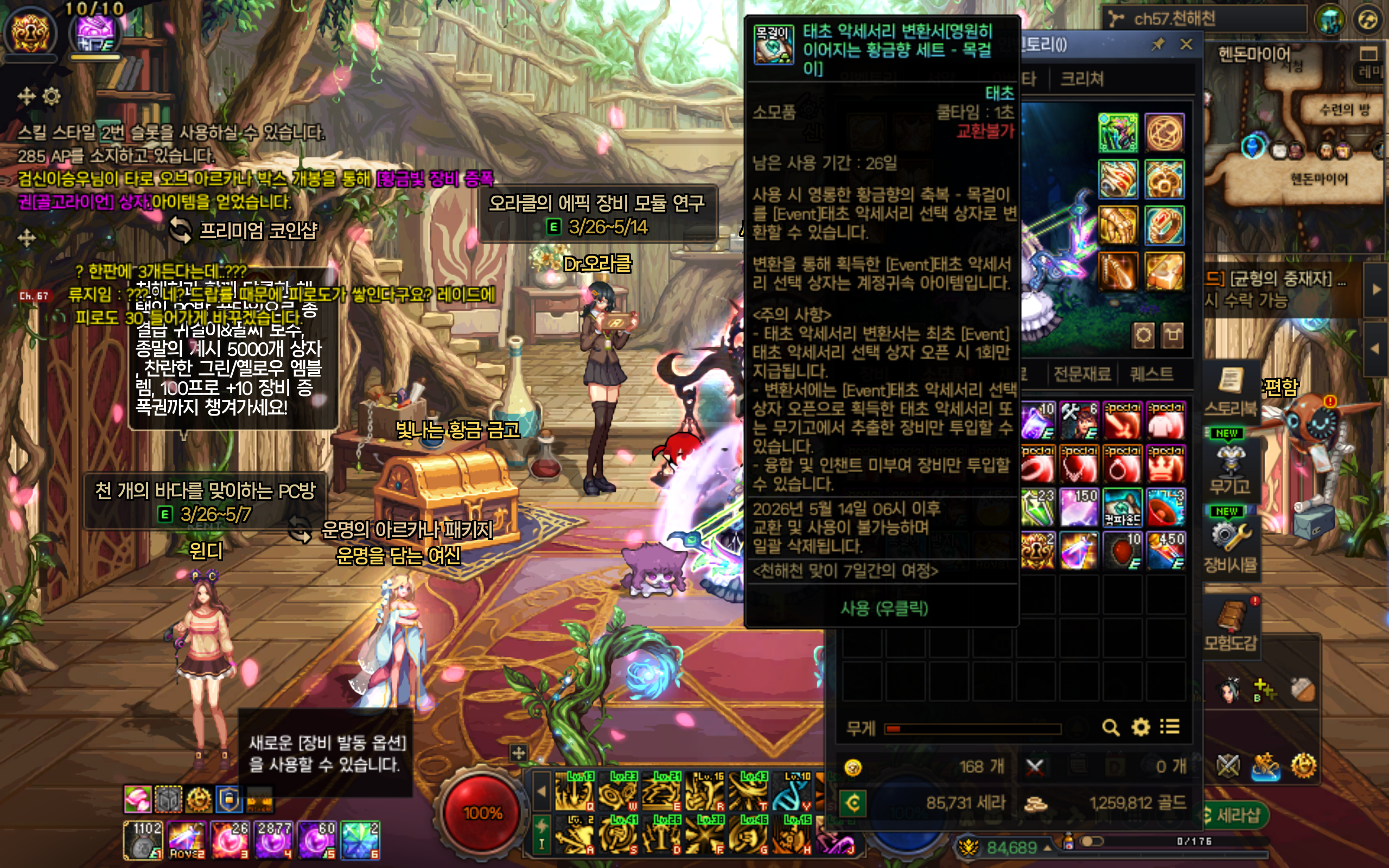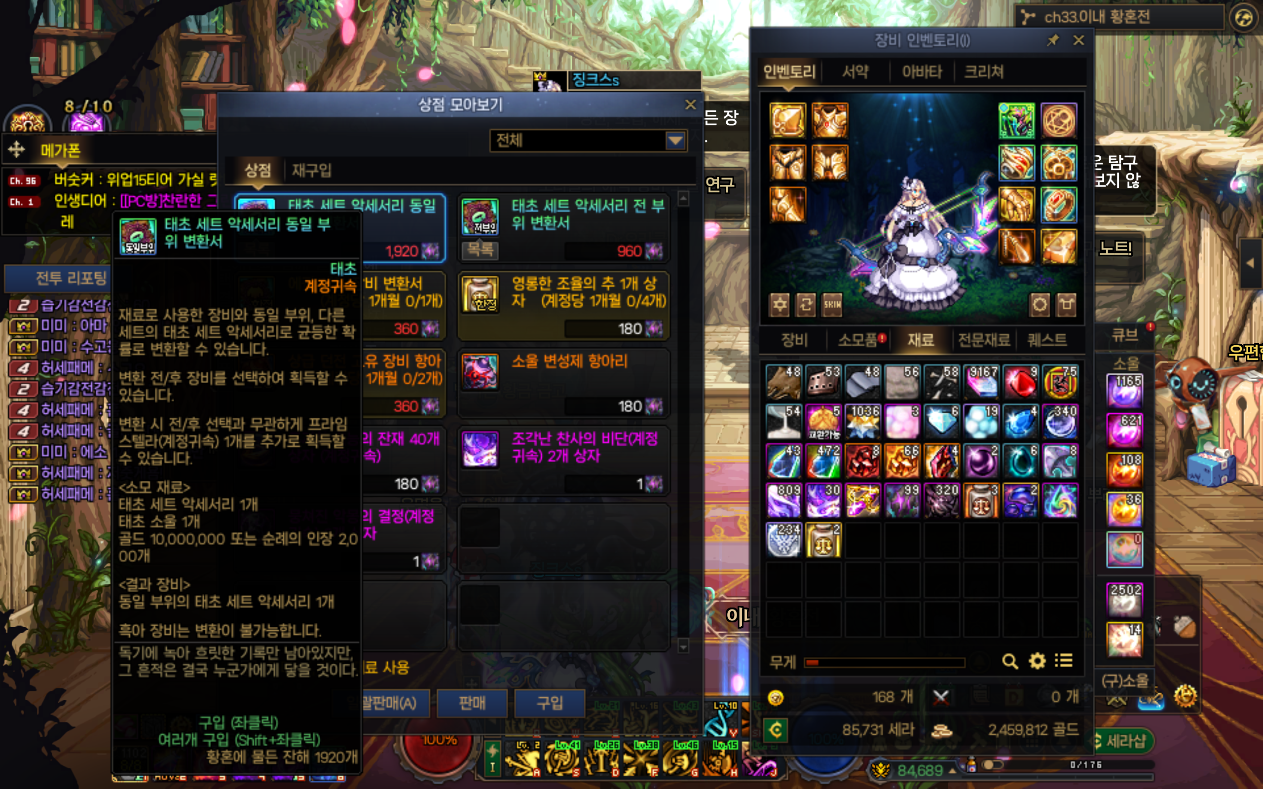 제가 초보라 잘 몰라서 황금향 악세사리로 태초를 받았는데요 이걸 변환하고