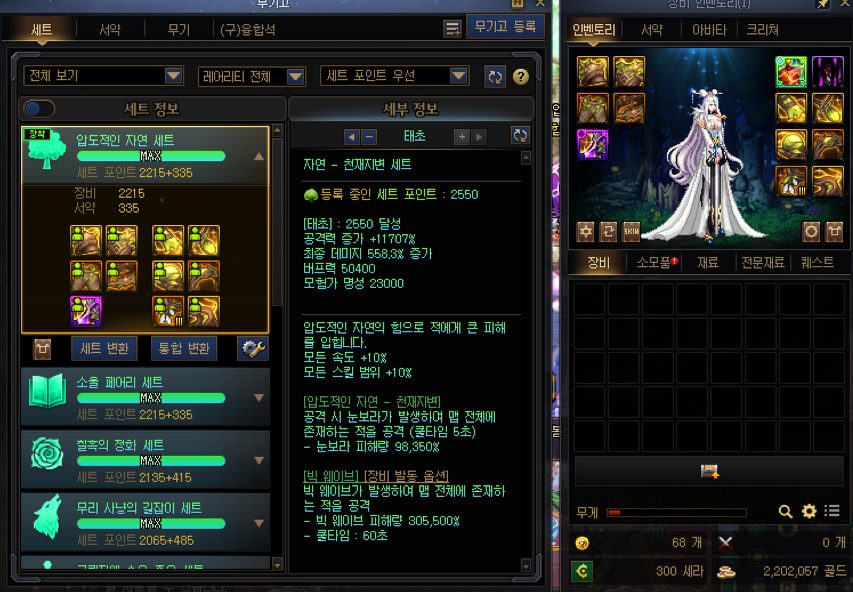 3. 지금 장비세트 제일 높은게 자연셋인데 황금향 올에픽+2태초 가능한데 황황 조합으로 가는데 제일 높을까요?