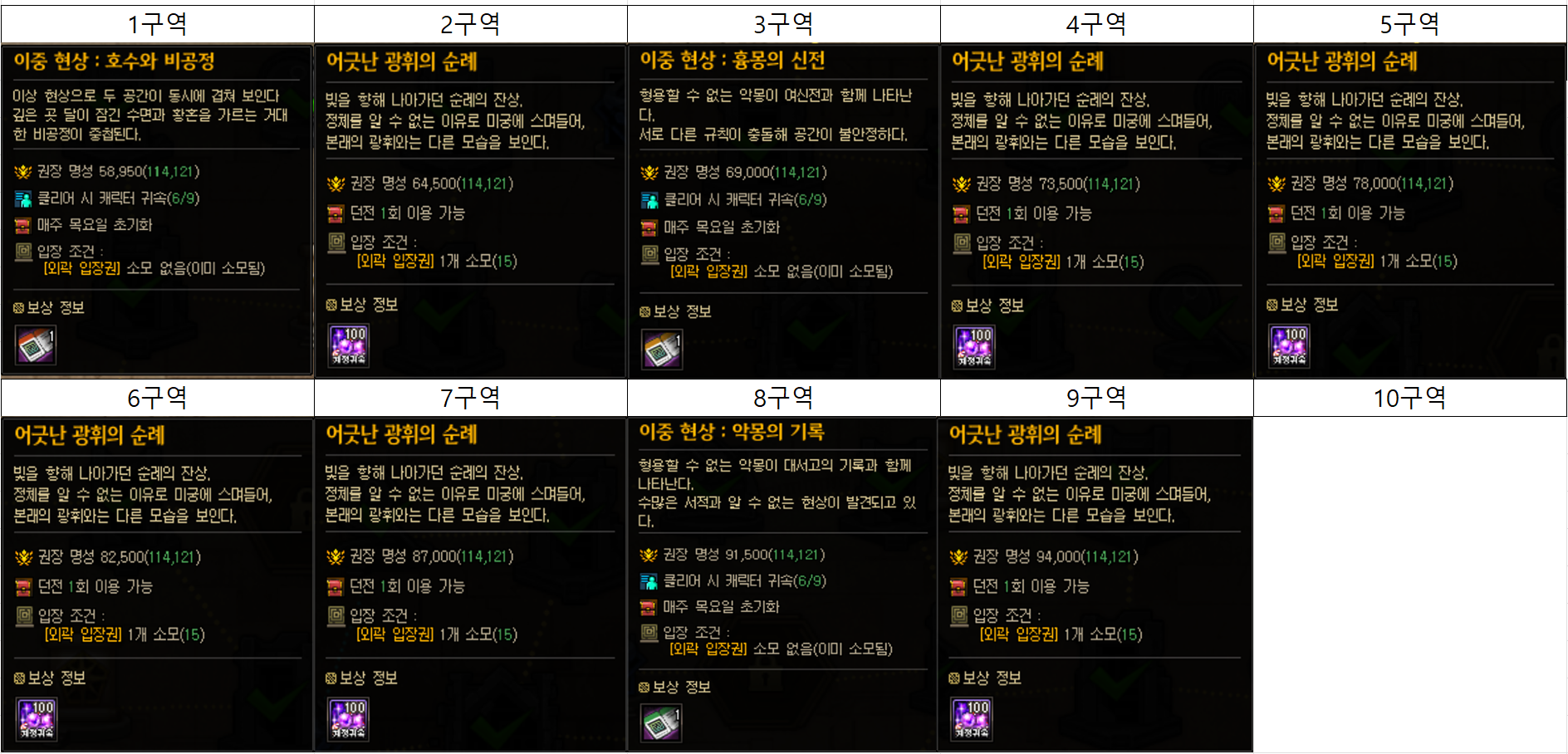 구역마다 요구 명성이 있는데 아래와 같습니다.