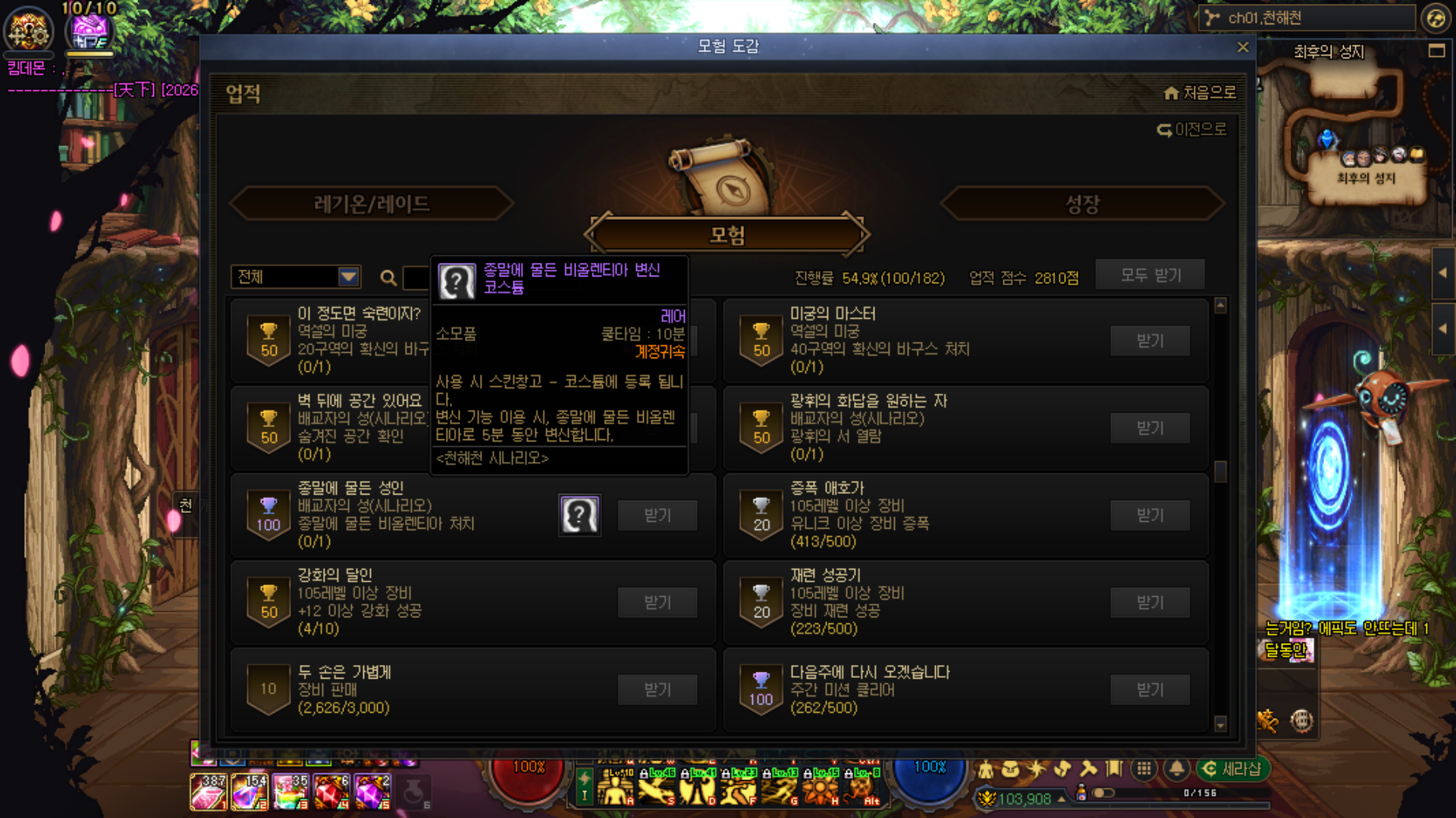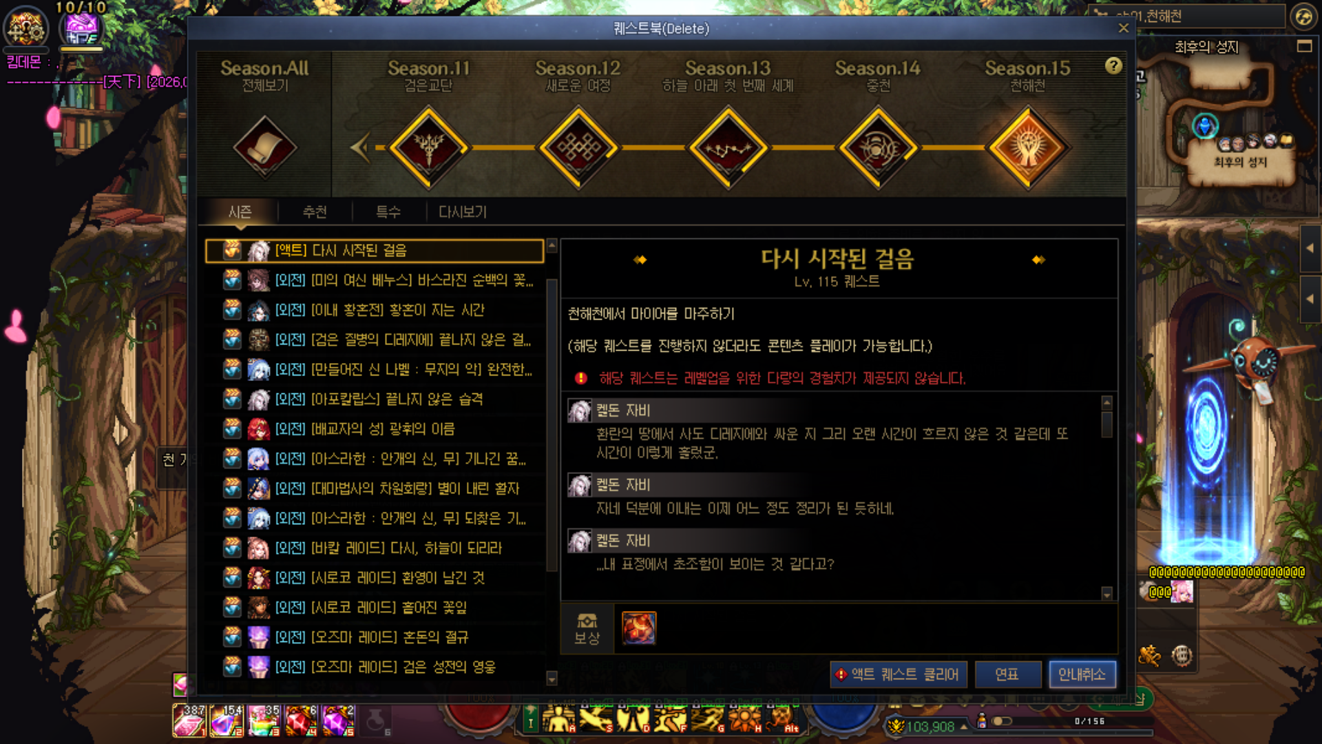 이미 다른 캐릭터로 한번 클리어 한적이 있어서 퀘스트 창에서 스킵하기 가능하나
