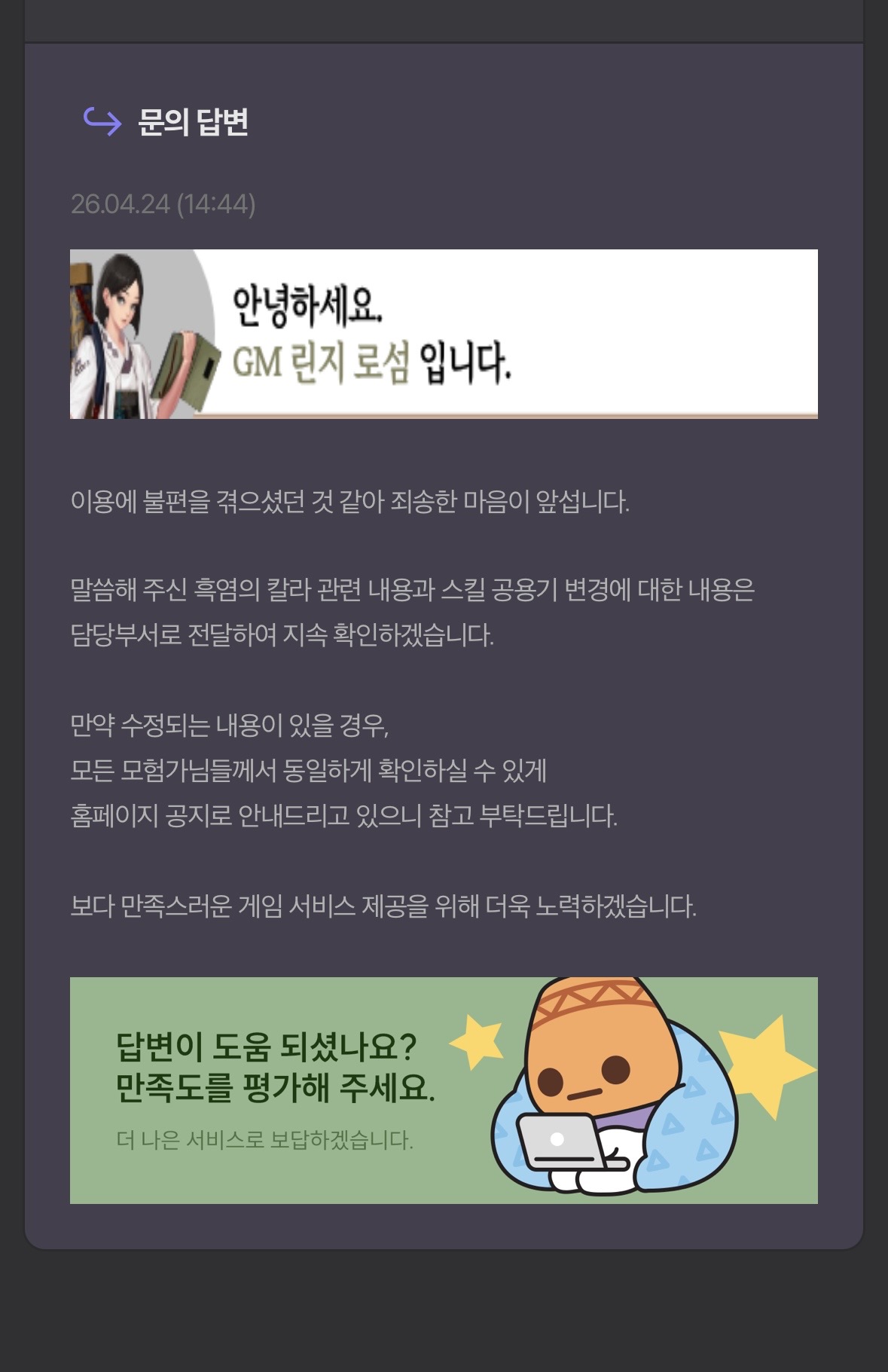 공지 [이벤트] [아포칼립스] 콘텐츠 공략 이벤트 안내 (4/15 ~ 5/7) 던전앤파이터 2026.04.20 5,571 0 공지 [상시이벤트] 4월 묻고답하기 이벤트 안내 (3월 답변왕 발표) 던전앤파이터 2026.04.09 5,959 2 공지 던파로ON : 천해천 발표 요약 던전앤파이터 2026.03.07 29,157 15 공지 천해천 뉴비 정보 모음 (가이드 / 시스템 / 장비) (225) 던전앤파이터 2026.04.16 999,999+ 124 공지 천해천 던전 공략 모음 (천해천 - 퍼스트서버 아포칼립스) (194) 던전앤파이터 2026.04.24 999,999+ 148 공지 전직 별 가이드 모음 (26/03/03 갱신) (770) 던전앤파이터 2026.02.27 999,999+ 403 수다 [공통] [모집] ▶띵동◀ 길드에서 함께하실 가족을 모집 합니다 ! 베이비복스 11:31 13,708 10 수다 [공통] 조율자 확률 이게 맞는건가... 두식이당당 11:30 8 0 수다 [공통] [븜다닥 모집] 무지막지한 속보 ㅋㅋㅋㅋㅋㅋㅋㅋㅋㅋㅋㅋㅋㅋㅋ <개꿀잼 오픈톡 맛보기 공개> (671) 싑고수 11:28 317,106 34 질문 [웨펀마스터] 님들 태초무기 업그레이드 어떻게 하는건가요? 디자이너21 11:19 33 0 질문 [공통] 인챈vs체홀 (1) 소울을담어 10:47 92 0 질문 [공통] 디레지에 헤딩 안가도 괜찮은가요? (1) 건볼 10:40 145 0 질문 [공통] 아포 2단 2800/950 컷으로 가면 힘들까요?? (3) -님피아- 10:38 174 0 수다 [공통] 신규친목길드 티백에서 길드원 모집합니다 ★☆단톡/디코/뉴비복귀환영☆★ (3) 악령쿠마 10:33 8,350 4 수다 [공통] 당신을 존중하는 Nugget 길드에서 천해천 함께하실 신규 길원 모집합니다! [951/1000] (113) 네오패드 10:21 88,909 24 수다 [공통] 왜 이리 이 게임은 뒷통수를 때릴까? 사니아천 10:15 181 0 토론 [공통] 운영진 버그안정화 문의는 왜만듬? 마검사끼리코 10:13 129 1 팁 [공통] 역설의 미궁 1~10구역 지도 공략 (380) Sanso 10:06 257,785 449 수다 [블레이드] 내 케릭터 실사화 사진 (2) 남궁벤데타 10:00 218 1 수다 [공통] 여귀검사 히든압 마이압 셋트 팝니덩 넨으로앗흥 09:56 2,806 1 질문 [웨펀마스터] 칭호 관련 질문있습니다 형님들 (2) 이게진짜일까 09:55 128 0 토론 [공통] ※중복커맨드 관련 불편사항※(그냥Z와 점프Z는 다르잖아) (10) 독도라지 09:28 2,032 8 질문 [공통] 장비 해체할때 무기고 자동등록하면 소울결정 (2) 지기미읍작 09:23 165 0 수다 [공통] 컴잘알 형님들 계신가요? (2) read 09:16 192 0 질문 [공통] 본캐에 원하던 서약결정이 부캐에 나오면 (2) 미니에 08:57 288 0 수다 [공통] 성인 친목 길드! "월하무인" 에서 길드원 구해요! 많이 나간 자리를 찾읍니다 같이 천해천도 함께해요 악연20개 길공중! (75) 넨으로앗흥 08:56 158,543 17