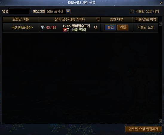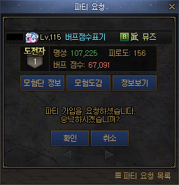 장비 점수의 경우 파티 요청 창에서 다른 정보와 함께 장비/버퍼 점수가 표시되어 즉시 참고하기에 용이한데요.