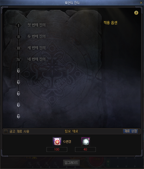 묵언의 진의는 신규 재료 빛의 실마리를 사용하여 캐릭터의 성능을 높일 수 있는 콘텐츠입니다.