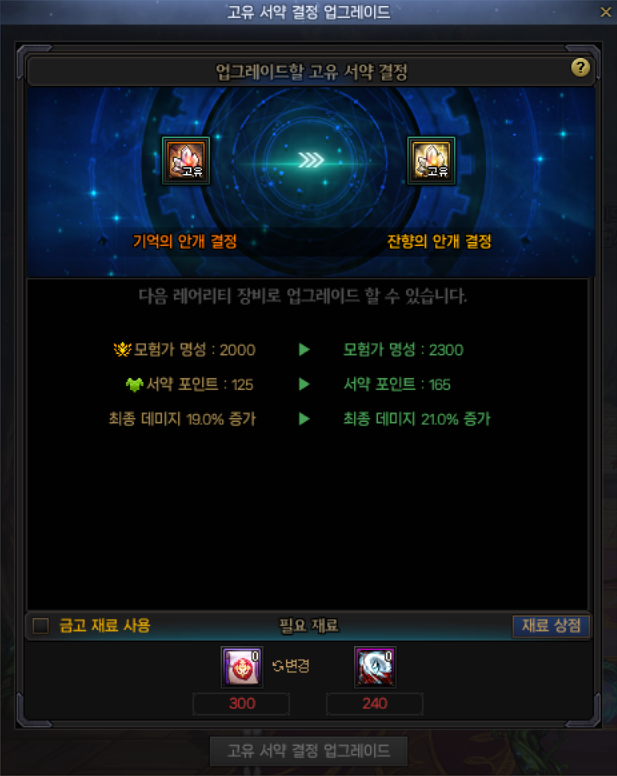 모든 서약 결정을 레전더리 이상으로 맞추지 못한 캐릭터나 희망하는 세트의 서약 결정 파밍이 부족한 캐릭터에도 도움이 될 것입니다.