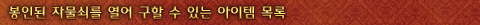 2010년 버전 봉인된 자물쇠의 아이템 리스트를 알려드립니다.