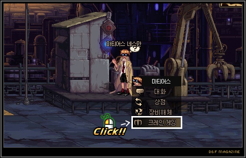 이제 마티어스를 클릭하여 "크레인 게임"을 작동할 수 있습니다.