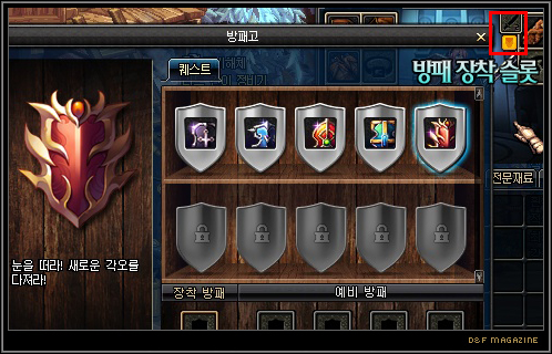 획득한 방패는 장착 시 캐릭터의 일부 능력치를 올려줍니다.