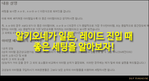 로그 모험가분의 아이템 세팅에 도움이 될 거에요!