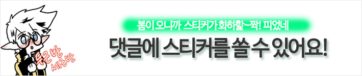 스티커를 핥...아니, 스티커로 댓글을 활짝 꽃피우시면 됩니다.*-_)ㅎㅎㅎ