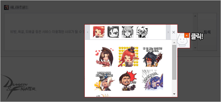 댓글 스티커는 공식 홈페이지 대부분의 모든 게시판에서 사용할 수 있지만,