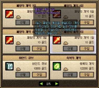 - 기존 용맹의 계약, 수호의 계약, 축복의 계약의 기능을 한가지로 합친 패왕의 계약을