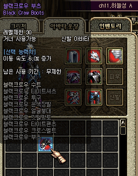 - 레어 아바타만의 독특한 능력치인 마을에서 이동속도 증가 옵션이 추가됩니다!
