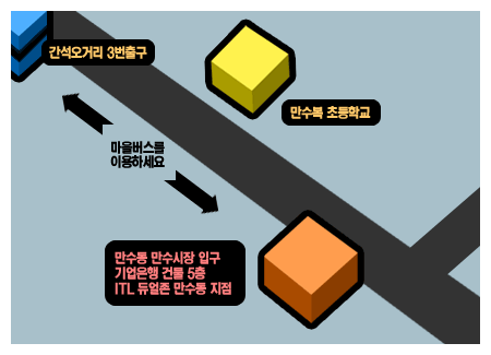 2. “만수주공후문” 정거장에서 하차 하시면 만수시장 삼거리 정면으로 보이는 기업은행