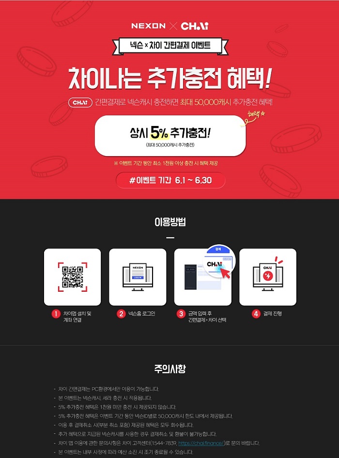 6월 넥슨 X 차이 간편결제 넥슨캐시 추가충전 이벤트
