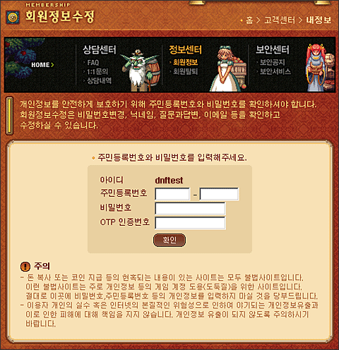 [던파 OTP 인증 확대 - 회원 정보 수정]