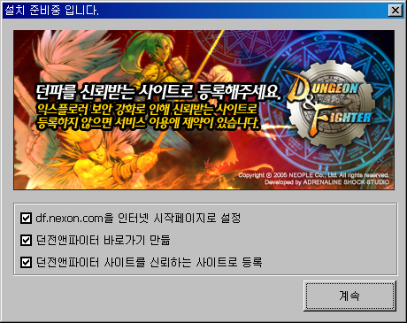 [계속]을 눌러 주셔야만 정상적으로 홈페이지 및 게임 이용이 가능합니다.