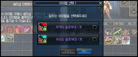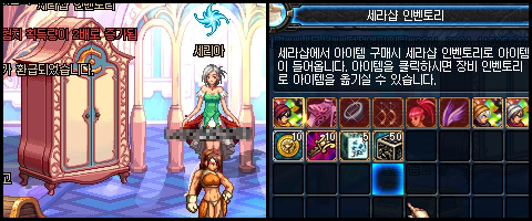 - 세라샵에서 구매한 아이템이 캐릭터 인벤토리로 이동.