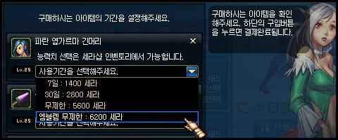 * 세라샵에서 아바타 구매 시 기간만 선택합니다.