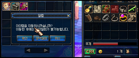 * 세라샵 인벤토리에서 캐릭터 인벤토리 이동 시 옵션을 설정할 수 있습니다.