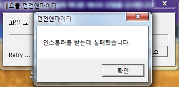 - 상세 내용 : 게임스타트 버튼을 누른 후 '인스톨러를 받는데 실패했습니다'