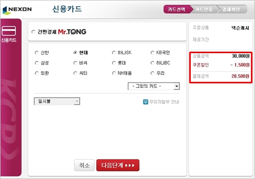 ※ 넥슨캐시 충전 서비스도 동일하게 적용 (☞ 공지내용 확인하기)